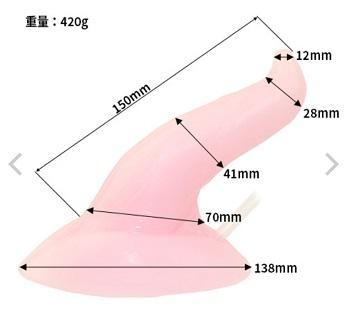 中央付近が一番太く約4センチ。亀頭は飛び出ている独特なデザインで太さは3.4センチ