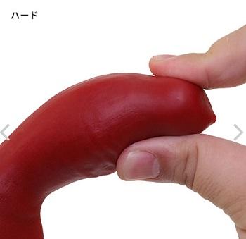 握るとグニャッと少し潰れる、柔らめの硬度。そのため、ビギナー向けですが、挿入など力のかかる時にはやや先端などの表面が少し潰れます。