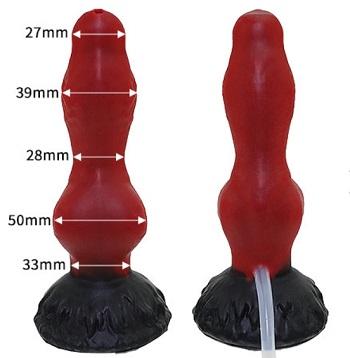 通販大魔王オリジナルの「アメージングビースト」ディルドの射精機能付きの紹介です。ディルドとしてのデザインや素材はそのままです。射精機能があることで発射プレイを楽しむことができます。カップルで使う時に楽しみ方が広がりますね。気持ち良さとビジュアルのエロティック感がマッチしたディルドです。