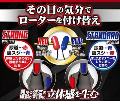 青がノーマル、赤がハード(強振動)という違いを持たせ、その配置を転換することで、2種類のモードを楽しめるのが魅力です。