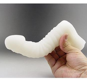 「白い巨根~細身でスマートな助教授M~」の最大の特長はこの曲がりです。中に硬い芯があり角度調整はお好みで自在 右曲がりも反り返ったペニスもお好み調整できます。
