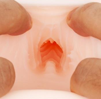 中央部からは縦ヒダから横ヒダへ変化します。突起が集合したタテヒダはかなり主張が激しく、左右のヒダも適度な存在感でペニスへと立体的に絡みます。相対的な射精力はハイレベル。