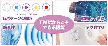 「U.F.O. TW」の操作パターンは5種類。パワフルなモーター(従来比2.2倍)と大きなアタッチメントはトルクが強く舐められる感触がしっかり堪能できます。