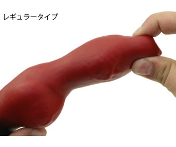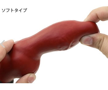 ソフトは先端を指で押すと凹むほどの柔らかさです。太いディルドに初挑戦する方にはおすうsめの素材硬度になります。
