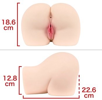 高さは最大約19センチ。奥行きは約23センチ。「生腰名器 北野未奈」はリアルなお尻にこだわった大型オナホール。後背位体勢ですがお腹側も造型されているため、仰向け利用OK。細部のディテールとサイズまでこだわった、リアル生尻です。